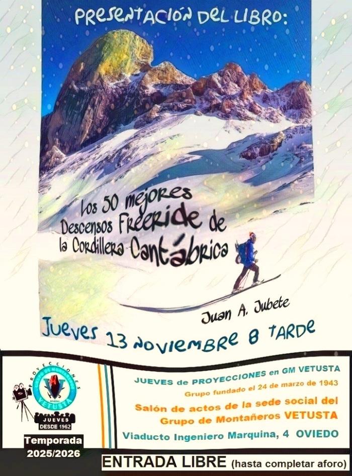 Este jueves, tendremos en nuestro Club a Juan A. Jubete, que nos presentará su libro: "Los 50 mejores descensos Freeride de la Cordillera Cantábrica".